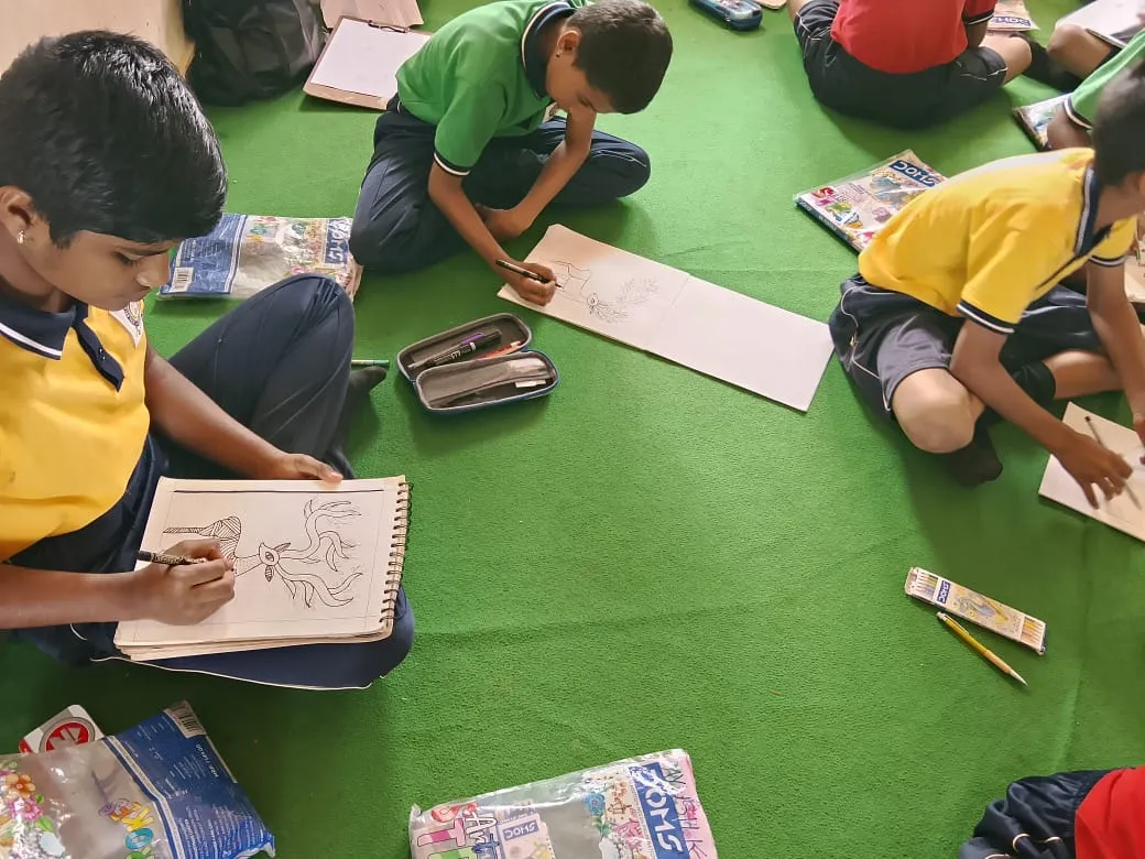 The Art Club conducted a Gond Art activity on 19 February 2026. Students were introduced to the traditional tribal art form of Gond painting and learned about its unique patterns, use of dots and lines, and cultural significance. The participants actively engaged in creating colourful Gond artworks, showcasing creativity and enthusiasm.